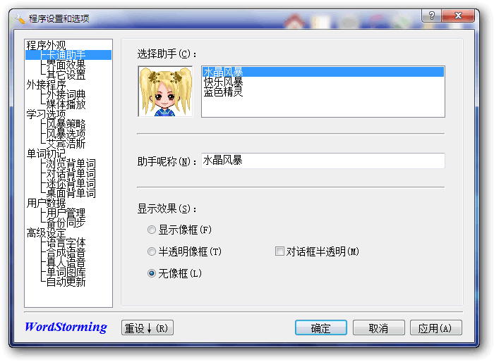 单词风暴设置功能十分强大,从界面效果、外接程序、学习策略、用户管理、多语言字体和语音都可自定义;