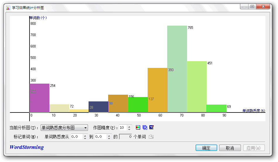 柱状图的高低表示单词个数的多少
